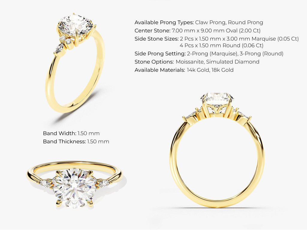 Cluster Accent Oval Cut Diamond Engagement Ring (2.00 CT)