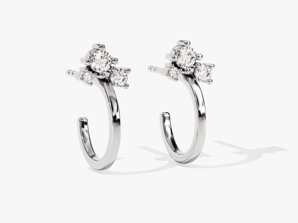 Adorned with clusters of brilliant round diamond - moissanite stones, these earrings exude radiant elegance and style. The handcrafted design ensures a unique and intricate pattern, making each piece a stunning work of art.