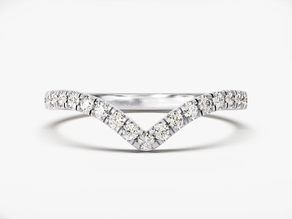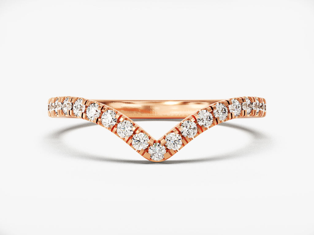 The Curved Moissanite Wedding Band is beautifully crafted in 14kgold and features 19 dazzling round moissanite stones. The elegant curve of the band is designed to complement and enhance the look of your engagement ring, creating a harmonious and sophisticated appearance.