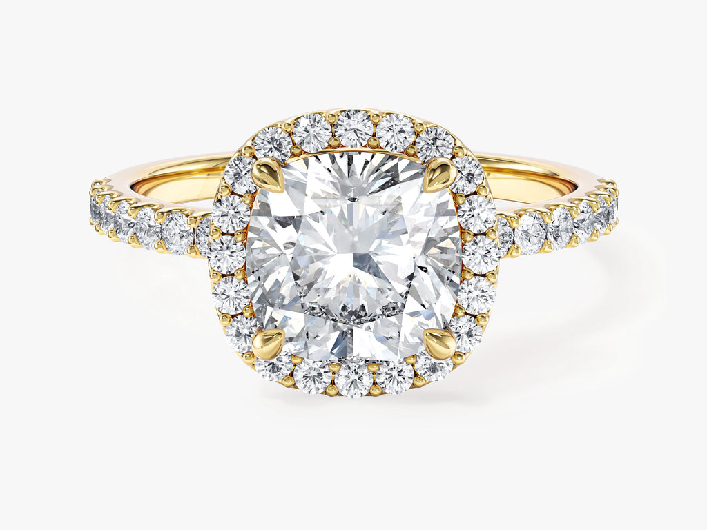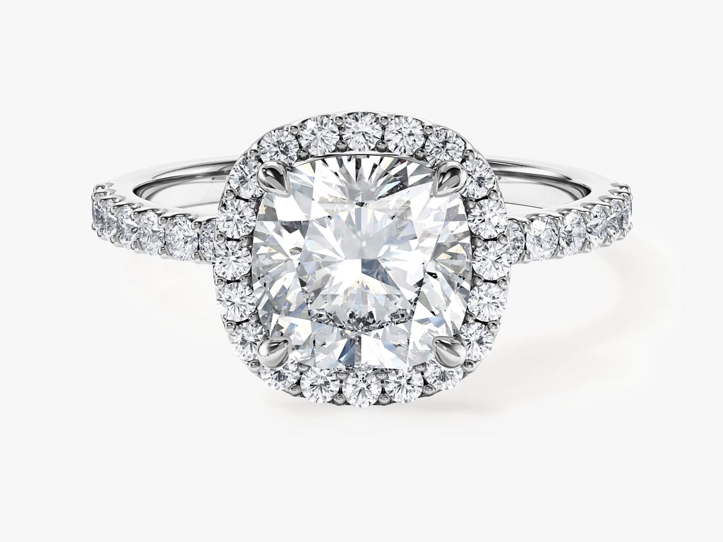 Cushion Halo Lab Grown Diamond Engagement Ring with Pave Set Side Stones (2.00 CT)
