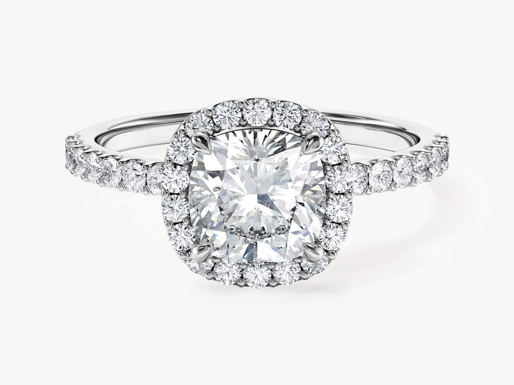 Cushion Halo Moissanite Engagement Ring with Pave Set Side Stones (1.50 CT)