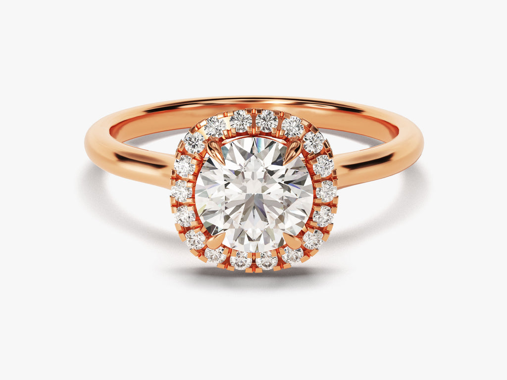 Cushion Halo Moissanite Engagement Ring crafted from brilliant round-cut moissanite that is surrounded by dainty moissanites to create a unique look.