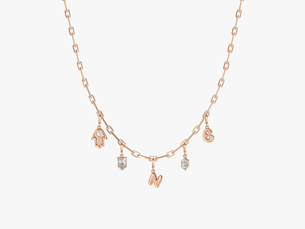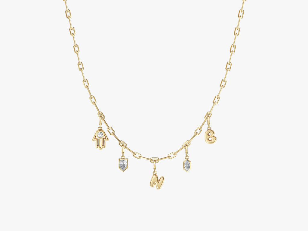 Each charm is delicately set and linked on a sleek chain, making it both timeless and playful. Whether you’re celebrating life’s milestones, carrying a loved one’s initial close to your heart, or simply expressing your personal style, this necklace transforms into a one-of-a-kind treasure that grows with you. Make it personal. Make it yours.
