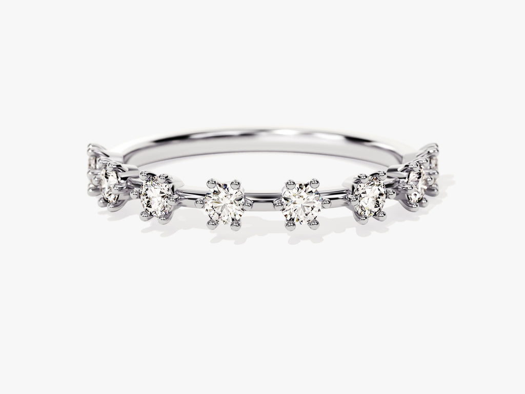 The Distance Stacking Ring is a sentimental and modern expression of connectivity and cherished relationships. Expertly crafted, this ring features a minimalistic design that's perfect for stacking, allowing you to create a personalized and meaningful combination.