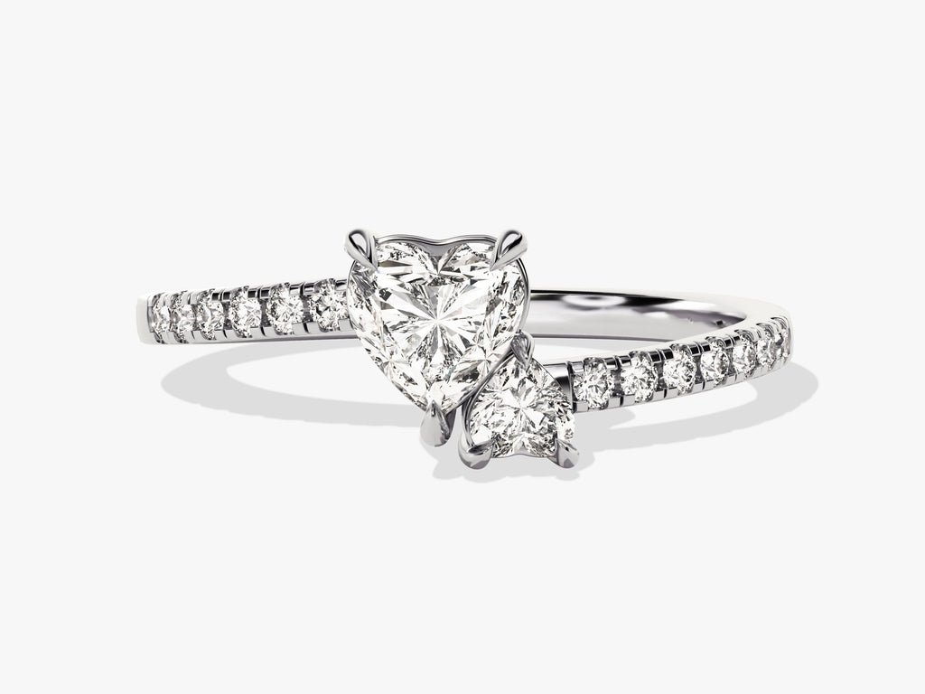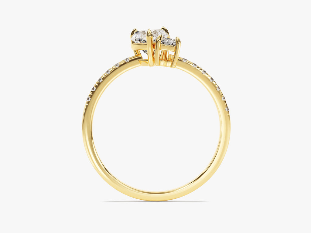 The design is enhanced by a pave moissanite band that adds a touch of brilliance and sophistication. Handcrafted by skilled artisans, this ring showcases exceptional quality and intricate detailing.