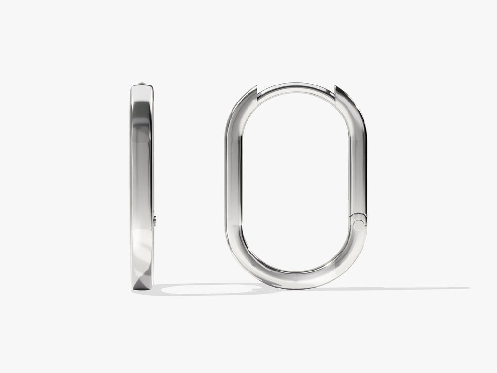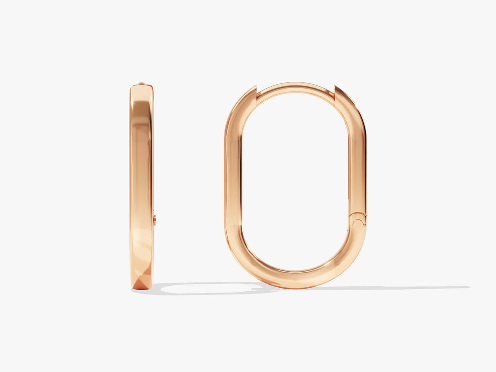 The Elongated Oval Hoop Earrings feature a sleek, elongated oval design, offering a modern twist on traditional hoop earrings. Crafted from solid gold, gold vermeil or sterling slver, these hoops provide a timeless elegance with a refined silhouette, perfect for adding sophistication to any look.