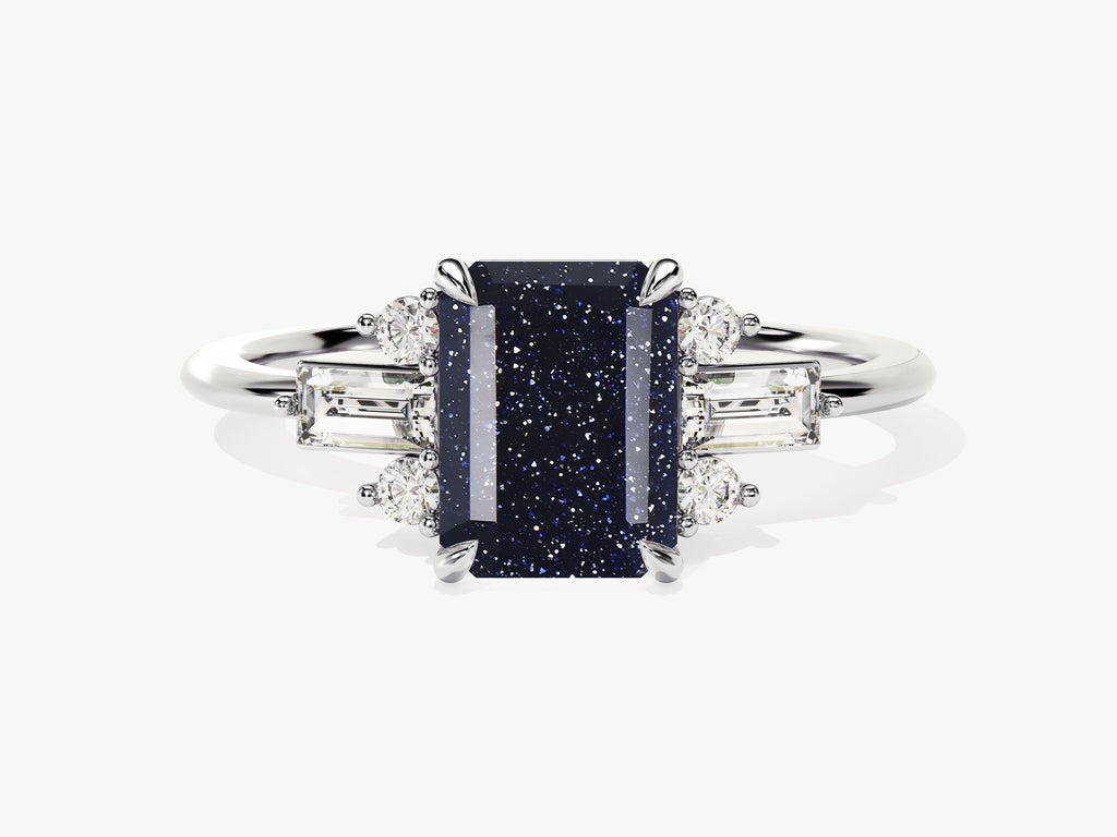 Emerald Cut Blue Sandstone Engagement Ring with Moissanite Sidestones