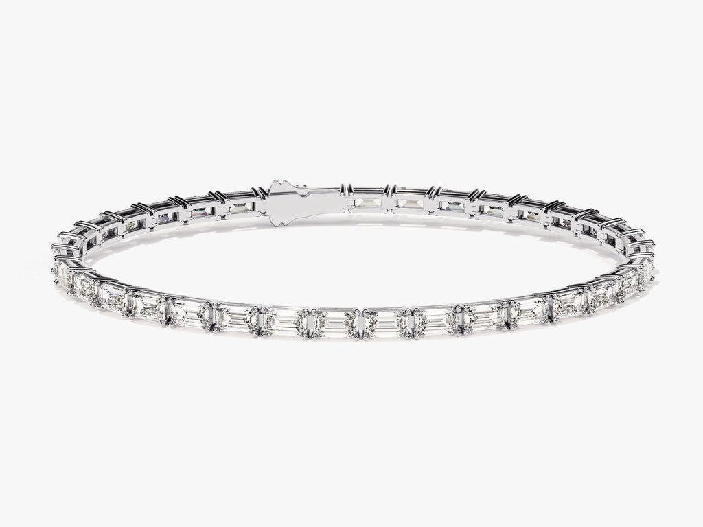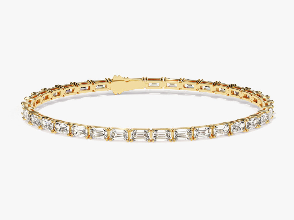 In this bracelet, each lab-created diamond is precisely cut in an emerald shape, ensuring uniformity and symmetry. The 0.50-carat weight for each diamond signifies a substantial size, contributing to the overall opulence of the piece. The continuous line of diamonds forms a seamless and visually pleasing pattern, allowing the bracelet to sparkle and catch the light at every angle.