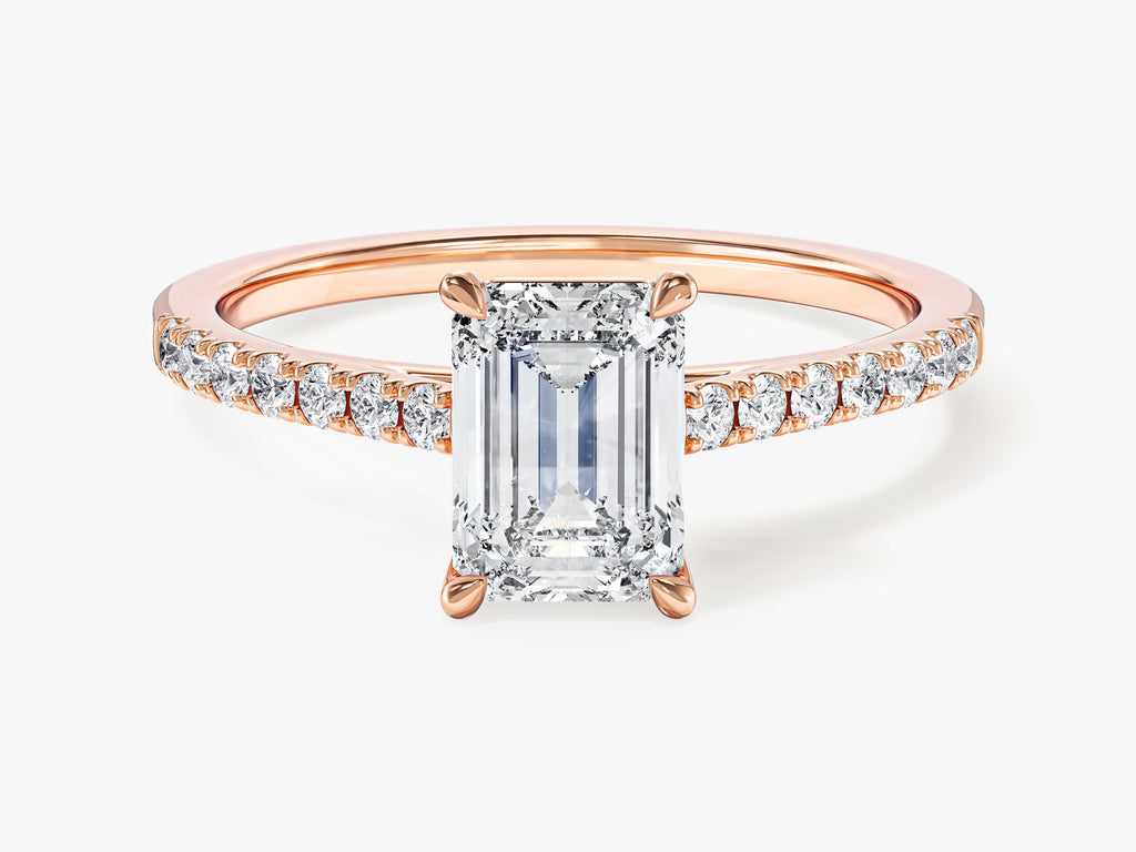 Prepare to be captivated by our Emerald Cut Lab Grown Diamond Engagement Ring with Pave Set Side Stones, a mesmerizing union of classic grandeur and modern sophistication. This extraordinary ring showcases a dazzling emerald-cut lab-grown diamond, masterfully crafted to enhance its exceptional clarity and captivating charm. The delicate pave setting glistens with ethically sourced lab-grown diamonds, adding an extra layer of brilliance and elegance to the design.