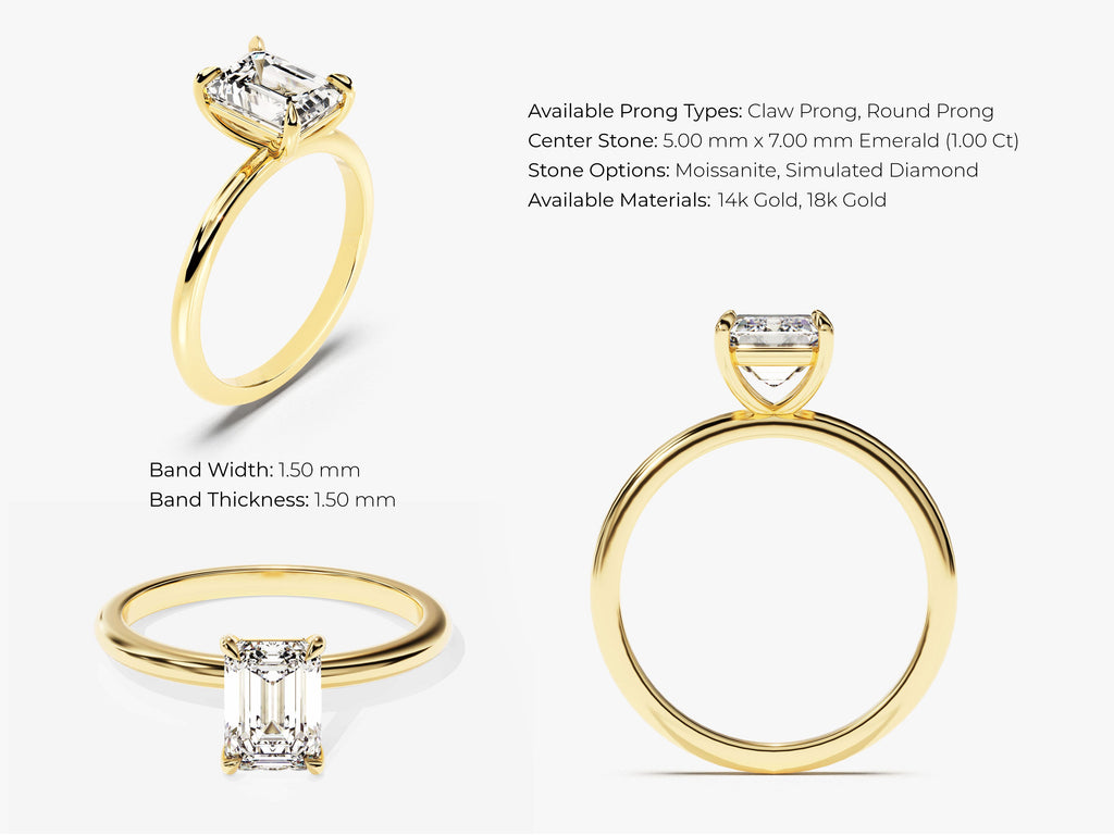 Emerald Cut Solitaire Moissanite Engagement Ring (1.00 CT)