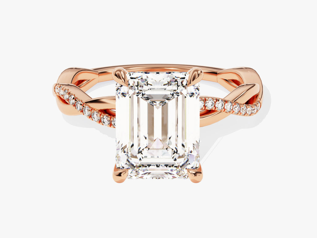 Emerald Twisted Diamond Engagement Ring with Pave Set Side Stones (3.00 CT)
