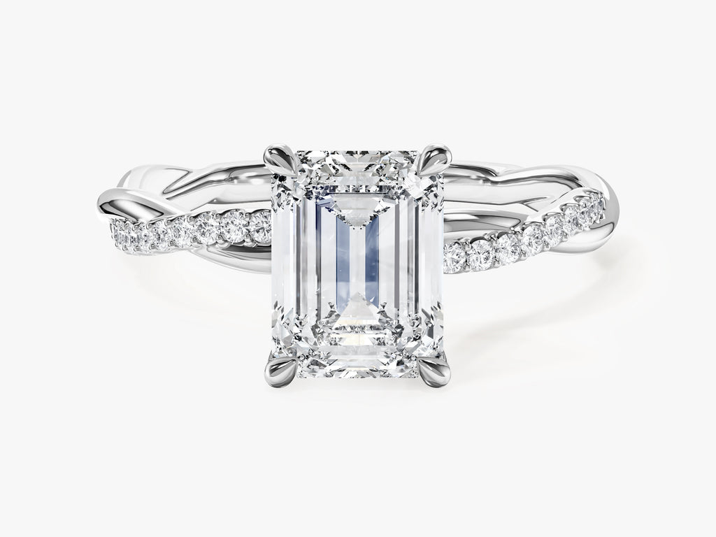 Emerald Twisted Lab Grown Diamond Engagement Ring with Pave Set Side Stones (2.00 CT)