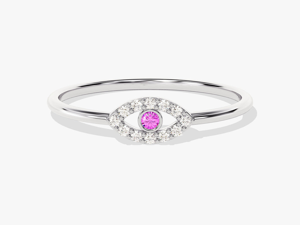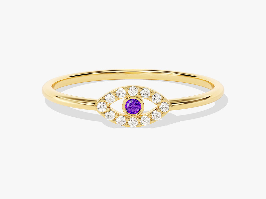The Evil Eye Birthstone Ring combines the powerful symbol of the evil eye with a personalized touch through a vibrant birthstone. Known for offering protection and warding off negativity, this ring blends meaning and elegance. Its sleek design makes it a stylish yet meaningful accessory, perfect for daily wear or as a thoughtful gift for someone special.