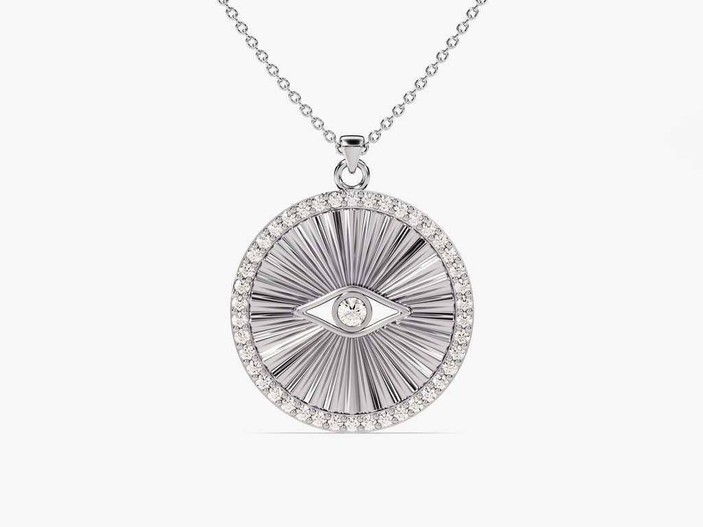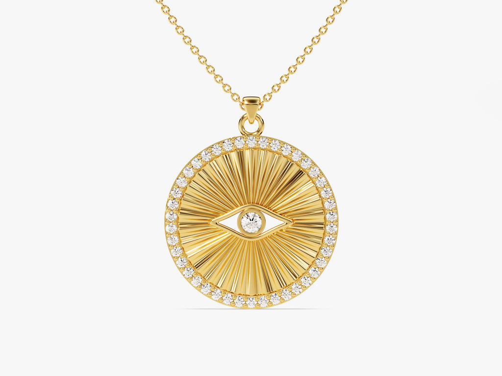 Experience the elegant sophistication of our Evil Eye Pendant Necklace. Crafted from solid gold, gold vermeil or sterling silver, this luxurious piece adds a touch of exclusivity to any look. The intricate design beguiles and charms, making it the perfect accessory for a truly unique style.