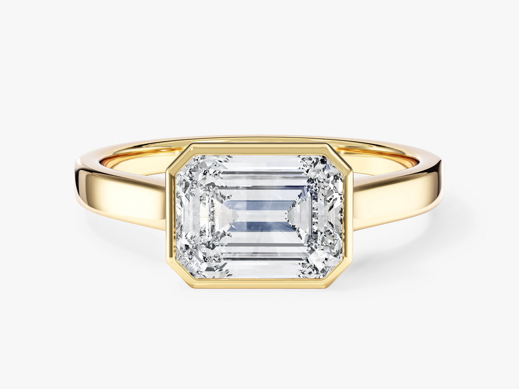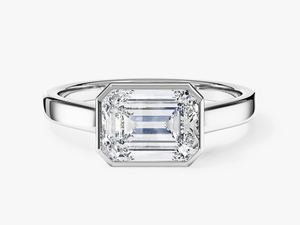 Flat Band Emerald Cut Moissanite Engagement Ring