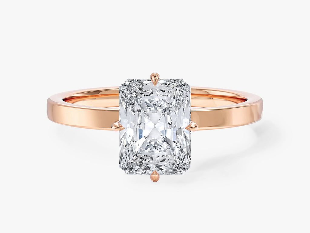 Flat Band Radiant Cut Natural Diamond Engagement Ring