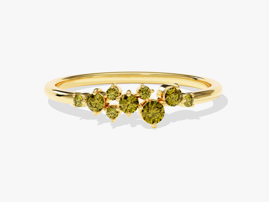 Delicate prongs intricately hold each gemstone, creating the illusion of a floating cluster that twinkles with every movement. This floating cluster band is sure to make you smile whenever you wear it.