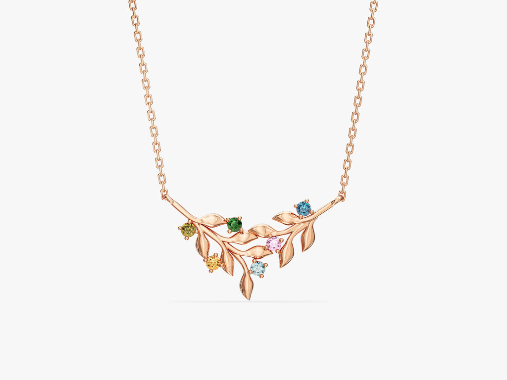 Celebrate your loved ones with our Floral Multi Birthstone Necklace, beautifully customizable with up to 6 sparkling birthstones. Delicate leaf accents surround each gem, making this piece a meaningful and elegant way to keep family close to your heart. Perfect for birthdays, anniversaries, or as a thoughtful gift for moms and grandmothers.
