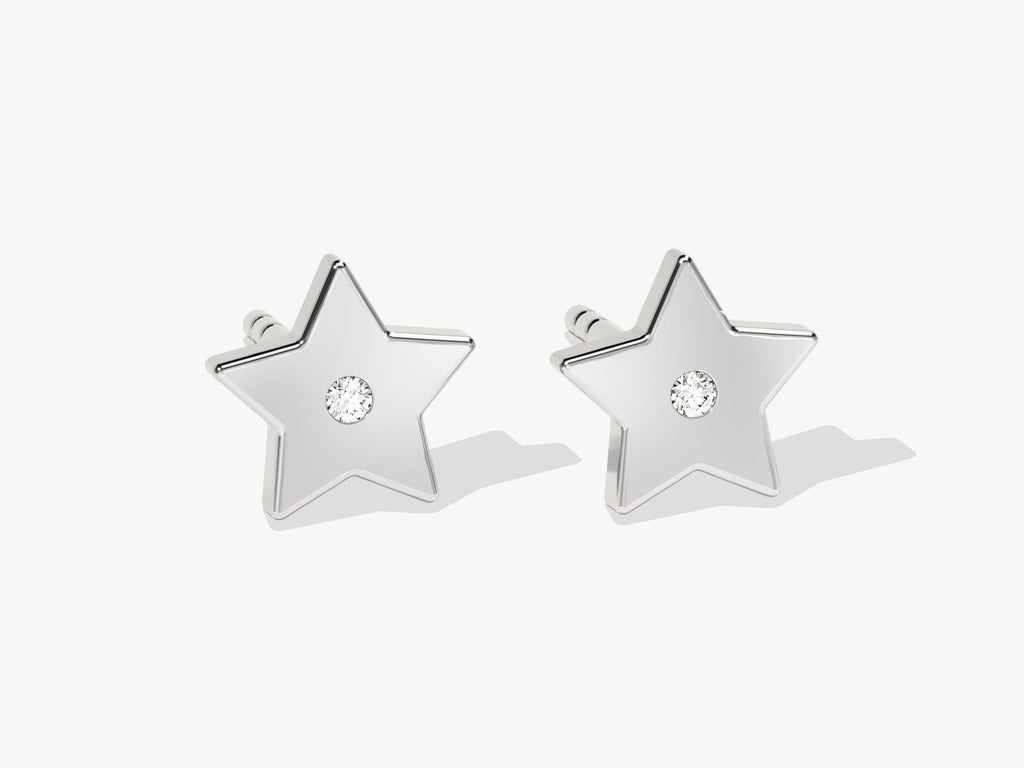 Shine brightly with this flush set star earring. Featuring a sleek star design with a flush-set stone at its center, this earring adds a touch of sparkle and elegance to any outfit. Crafted from high-quality solid gold, gold vermeil or sterling silver, it ensures both durability and a polished look.