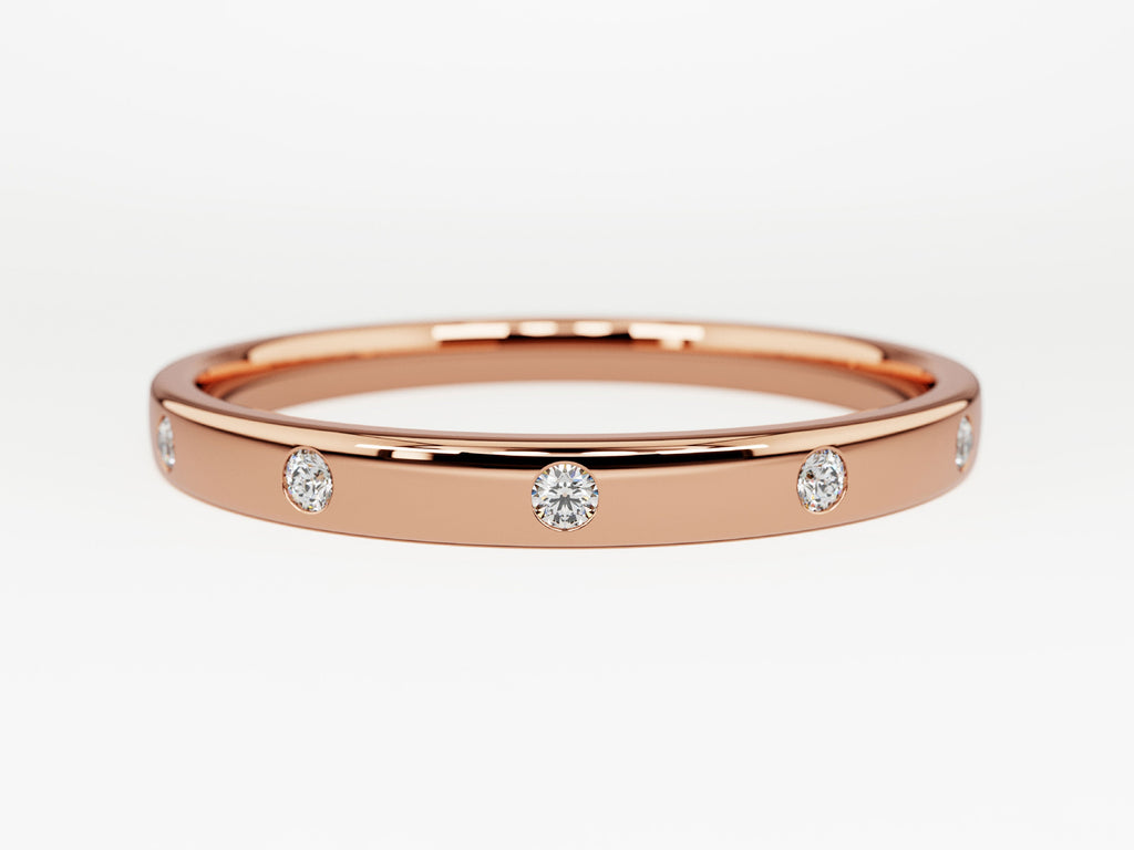 Twinkling round diamonds are spaced elegantly half of the way around this flush set band. Pair it with your engagement ring or wear it on its own for a discreet but chic look that's sure to turn heads.