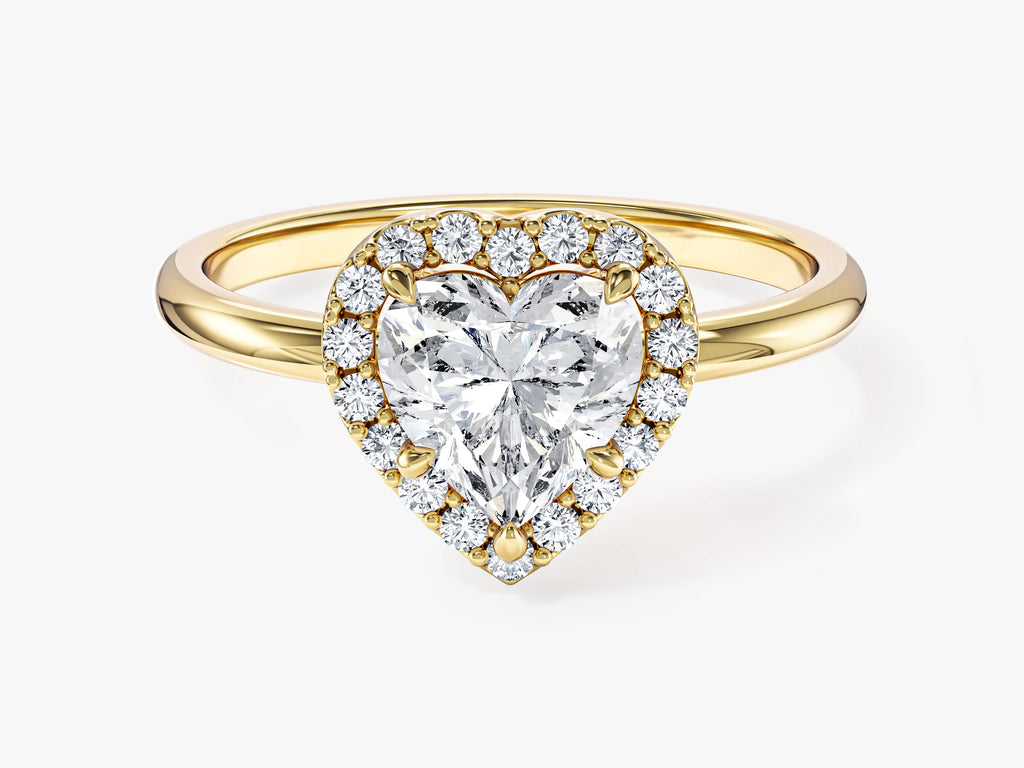 The Heart Halo Lab Grown Diamond Engagement Ring symbolizes your enduring love and commitment in a truly unique and heartfelt way. It's a stunning embodiment of romance and elegance. At its center, a brilliant heart-cut lab-grown diamond is embraced by a delicate halo, adding an extra layer of sparkle and sophistication to the design.