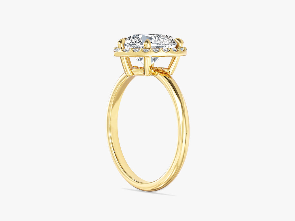 Make a lasting declaration of love with the Heart Halo Lab Grown Diamond Engagement Ring. This stunning ring features a radiant heart-cut lab-grown diamond framed by a delicate halo of ethically sourced diamonds. It is a piece of timeless elegance and enduring love, the perfect way to cherish your relationship for years to come.