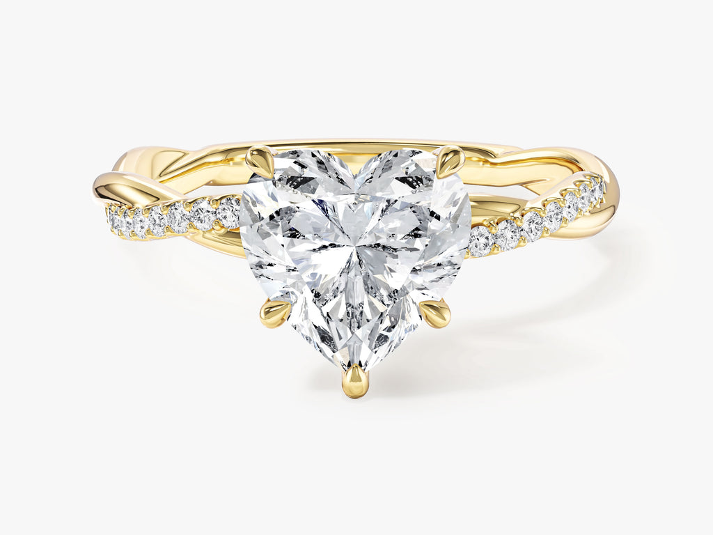 Make a lasting declaration of love with our Heart Twisted Lab Grown Diamond Engagement Ring with Pave Set Side Stones. The band's unique twisted design adds a touch of refinement and elegance, symbolizing the intricate journey of your love. The intricate pave setting, featuring ethically sourced diamonds, creates an atmosphere of brilliance and sophistication.
