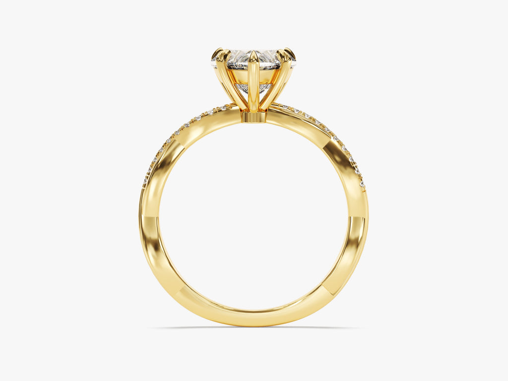 Elevate your love story with elegance in every curve using our Heart Twisted Moissanite Engagement Ring with Pave Set Side Stones. This extraordinary ring features a stunning heart-cut moissanite center stone, celebrated for its romantic charm and radiant brilliance. It is gracefully set within a twisted band, adorned with smaller moissanite stones meticulously arranged in a pave style, creating a dazzling display of shimmer and opulence.