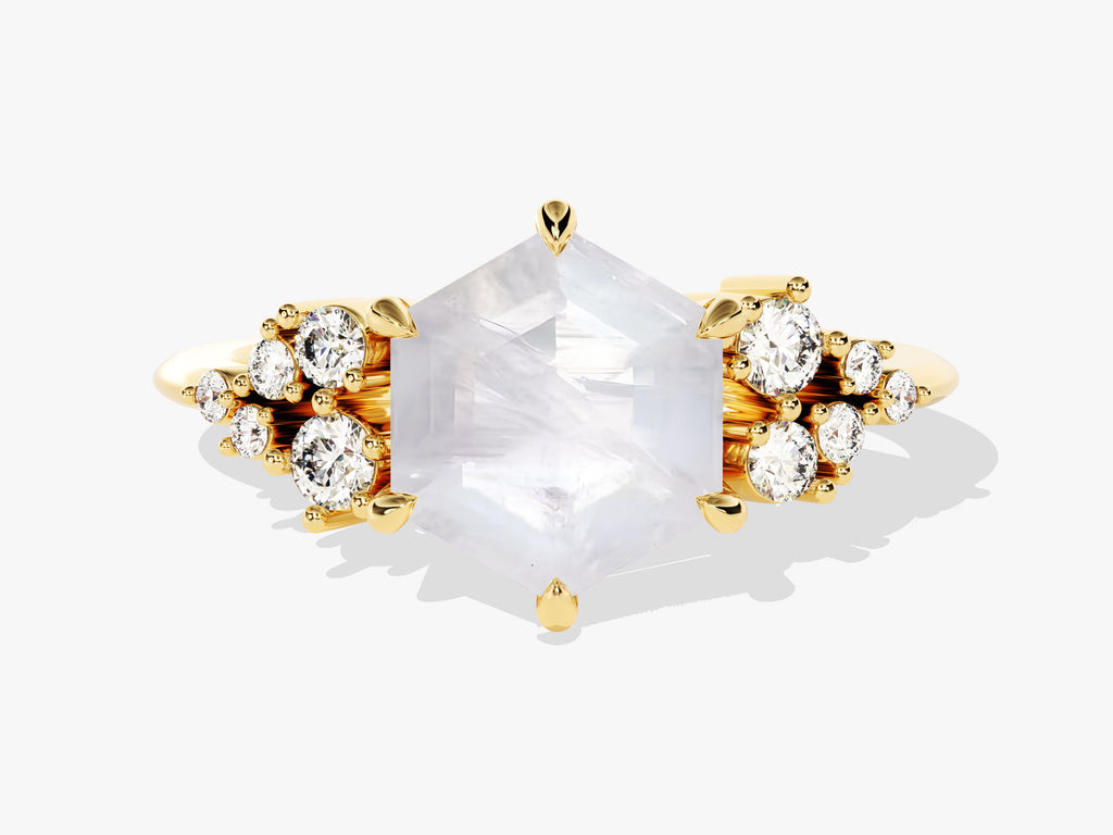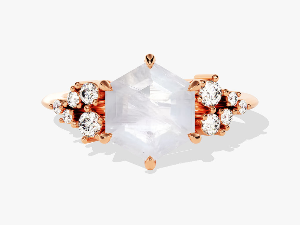 Hexagon Moonstone Engagement Ring with Moissanite Cluster