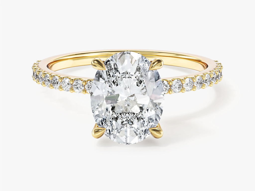 Hidden Halo Oval Lab Grown Diamond Engagement Ring with Sidestones (2.00 CT)