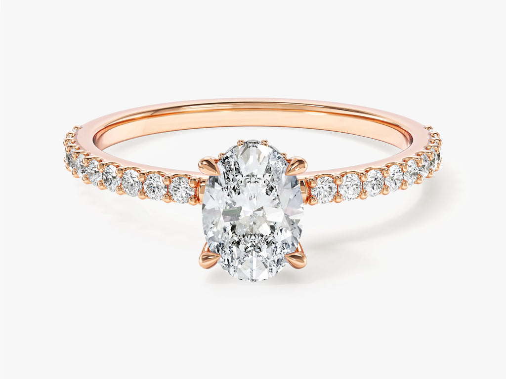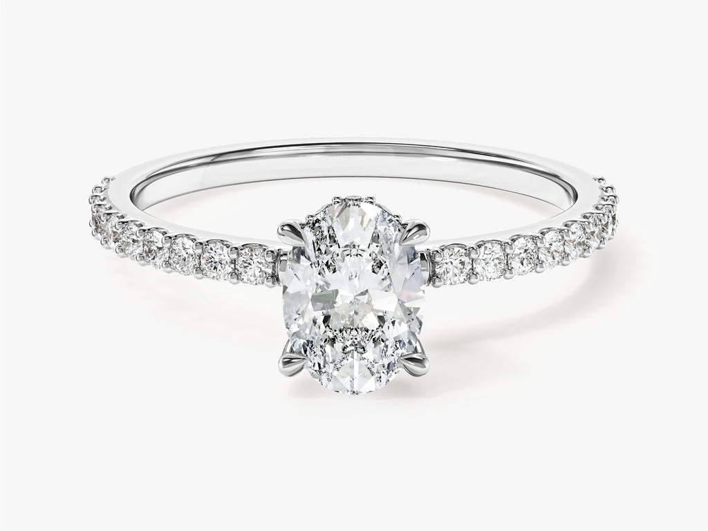 Hidden Halo Oval Moissanite Engagement Ring with Sidestones (1.00 CT)