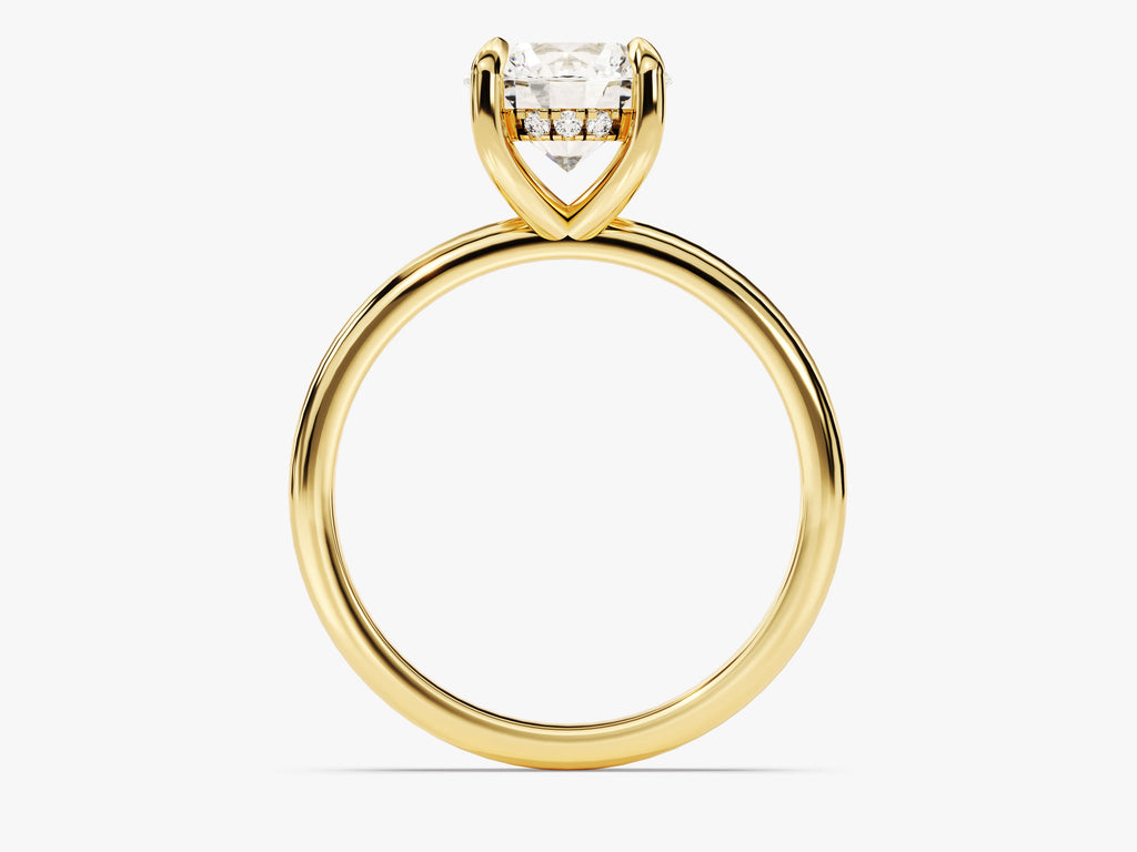 Introducing Hidden Halo Round Moissanite Engagement Ring. An exclusive piece of jewelry that combines brilliant sparkle and timeless design for a truly exquisite experience. Crafted from the finest materials with an understated sophistication, this stunning ring will surely delight for years to come.
