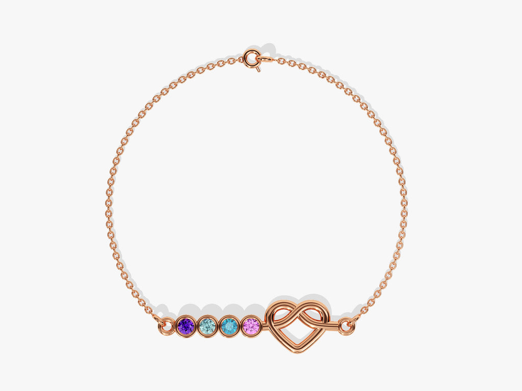 Our birthstone rolo chain bracelet features a unique knotted heart symbol and tiny birthstones on one side. Just choose the birthstones that hold special meaning to you or a loved one, and we’ll create a personalized piece that you’ll cherish for a lifetime. With its elegant design and thoughtful details, this bracelet is a beautiful way to celebrate birthdays, anniversaries or any occasion that’s special to you.