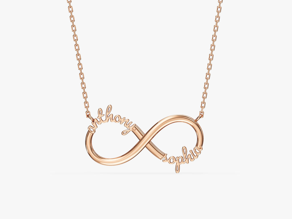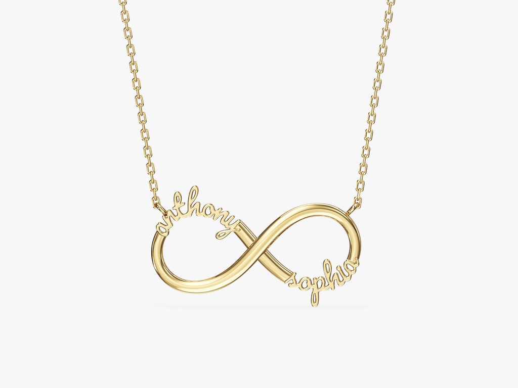 Celebrate endless love with our Infinity Name Necklace, featuring two names elegantly placed over the iconic infinity symbol. A timeless piece that represents an unbreakable bond—perfect for couples, family, or best friends.