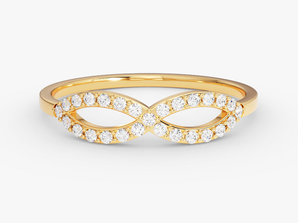 For a love that knows no bounds and a promise that lasts a lifetime, this infinity shaped band is the perfect choice. Delicate diamonds trace the infinity symbol and shimmer with every movement, as if to signify the infinite love you share with your partner.