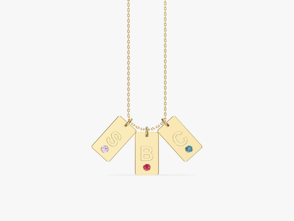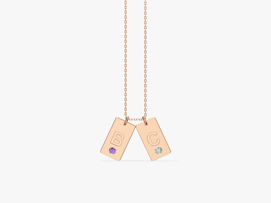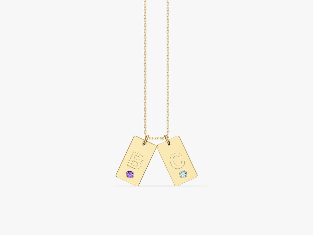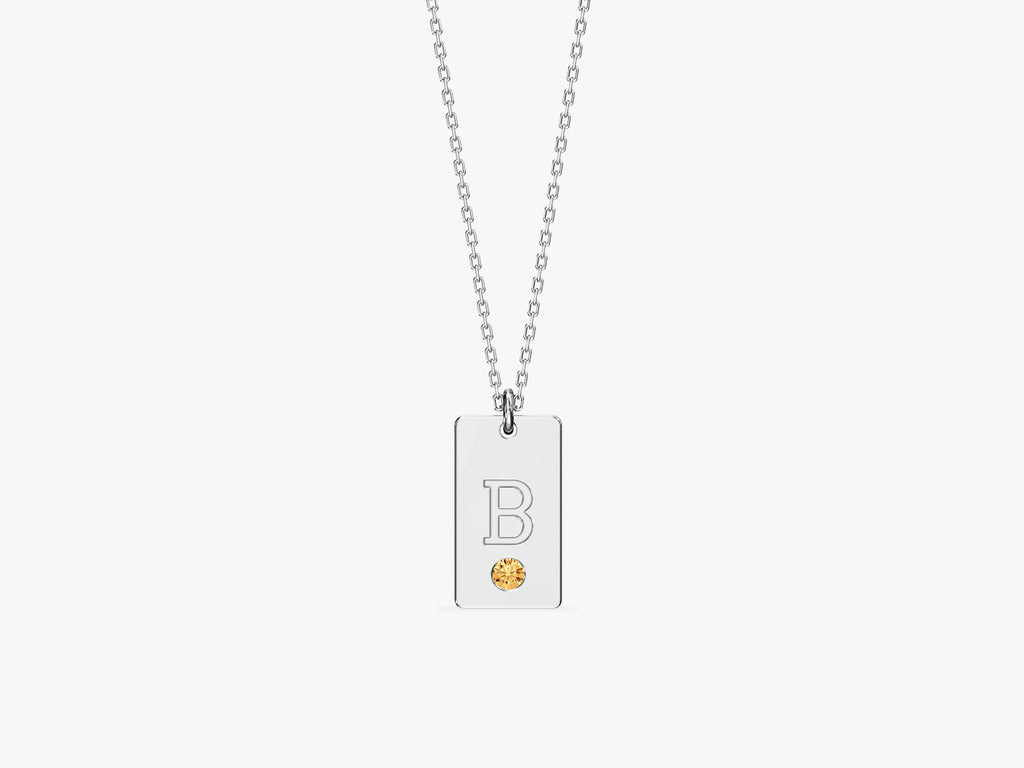 Personal and elegant, this necklace features a sleek tag pendant adorned with a sparkling birthstone and your chosen initial. A meaningful everyday piece that adds a subtle, customized touch to any look.