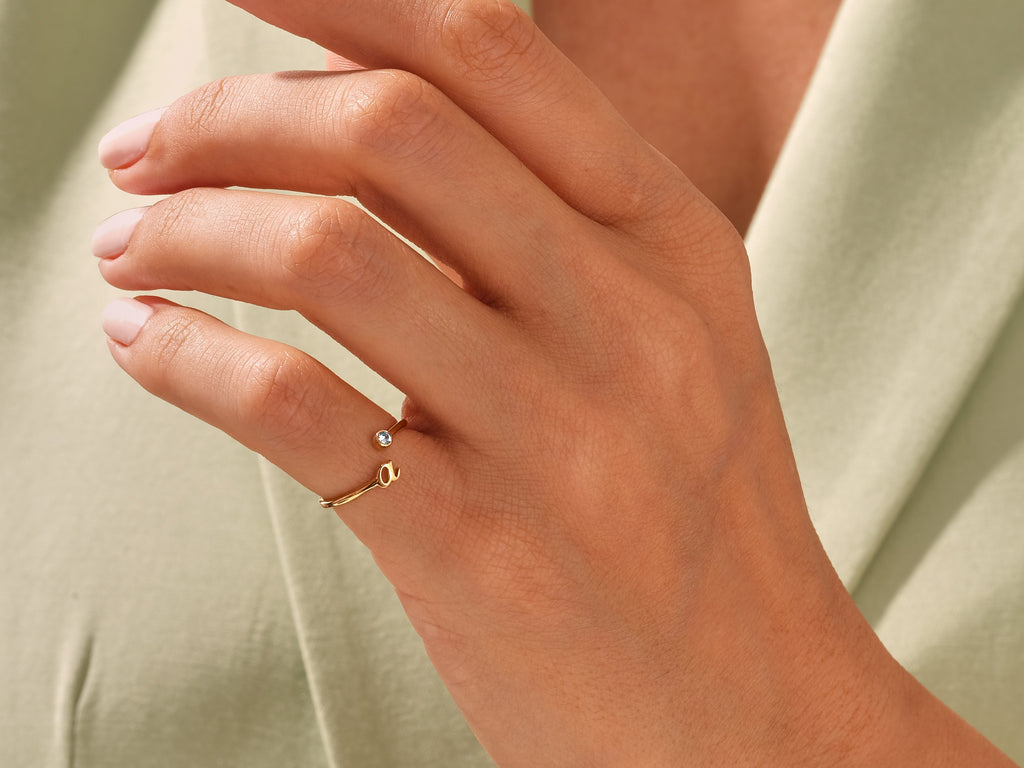 Elegant and personal, our Initial Open Birthstone Ring features a sleek open band design adorned with a sparkling birthstone on one end and a customizable initial on the other. Perfect for celebrating individuality, loved ones, or special milestones, this modern yet timeless piece adds a unique touch to any jewelry collection. Ideal for gifting or personal keepsakes.
