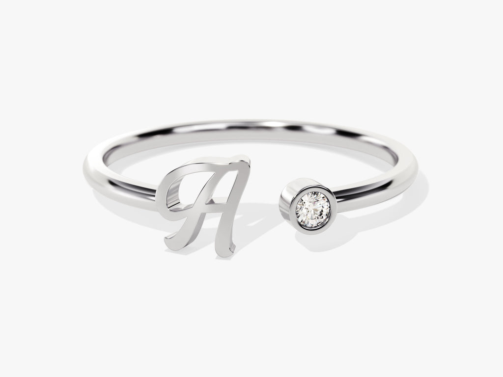 This beautiful Initial Open Ring is a luxurious statement piece that will elevate any ensemble. Crafted from exquisite diamonds or moissanite, this eye-catching ring sparkles with a sophisticated and exclusive allure. Whether you choose to flaunt it as a standalone statement piece or stack it with other rings, this ring will surely be your latest source of envy.