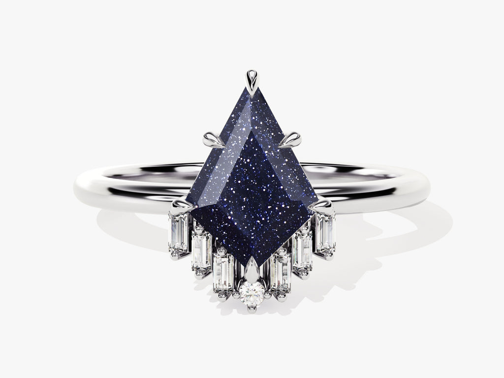 Kite Blue Sandstone Engagement Ring with Baguette Moissanite Sidestones