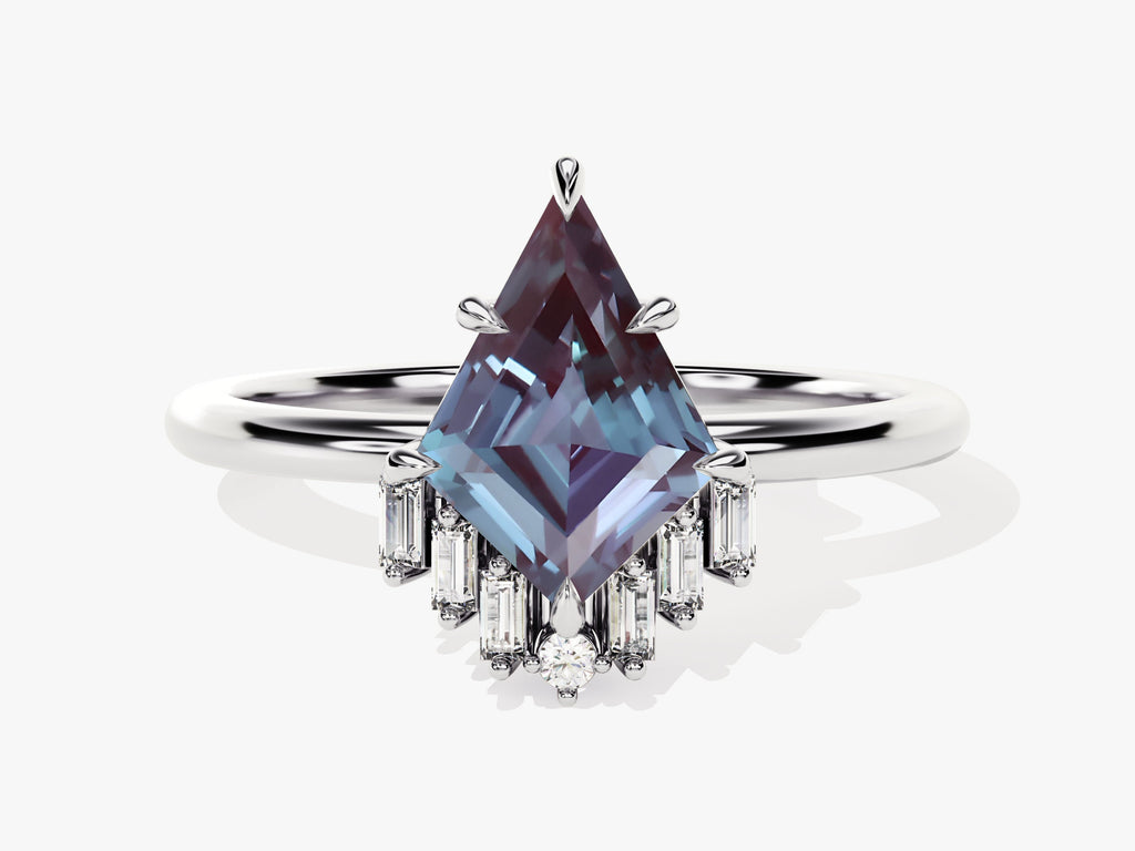 Kite Lab Alexandrite Engagement Ring with Baguette Moissanite Sidestones