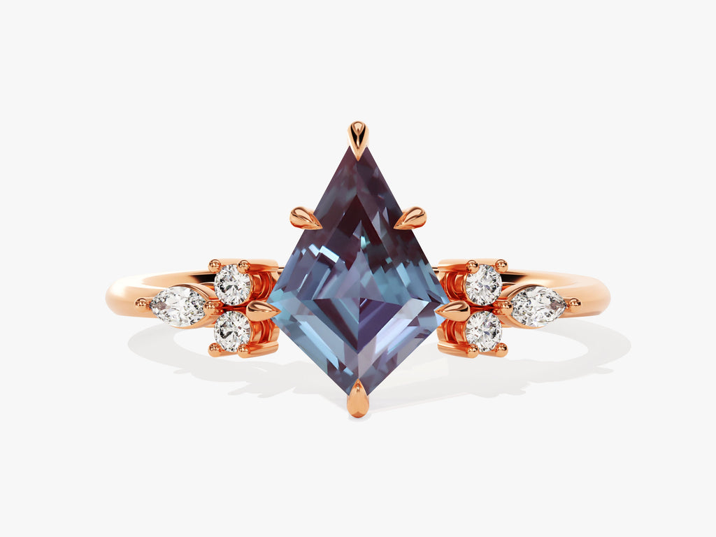 Kite Lab Alexandrite Engagement Ring with Marquise Moissanite Sidestones