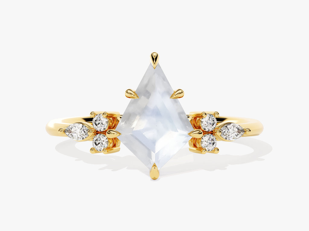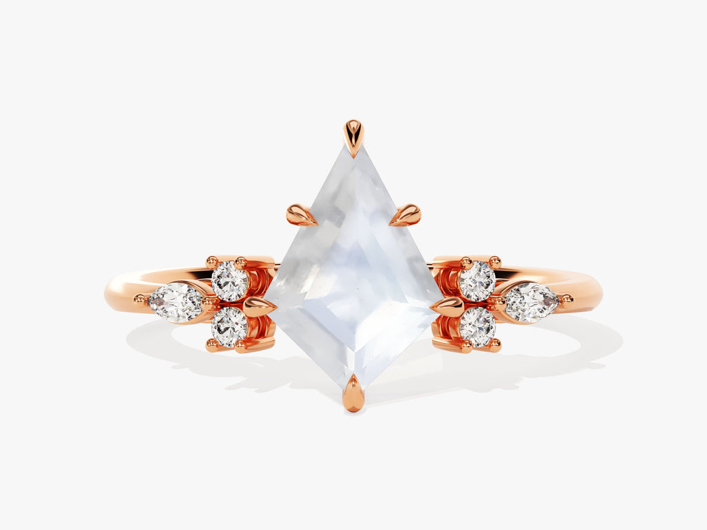Kite Moonstone Engagement Ring with Marquise Moissanite Sidestones