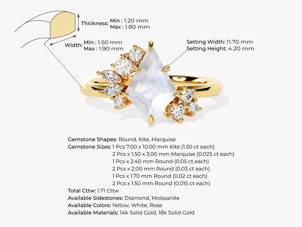 Kite Moonstone Engagement Ring with Moissanite Sidestones