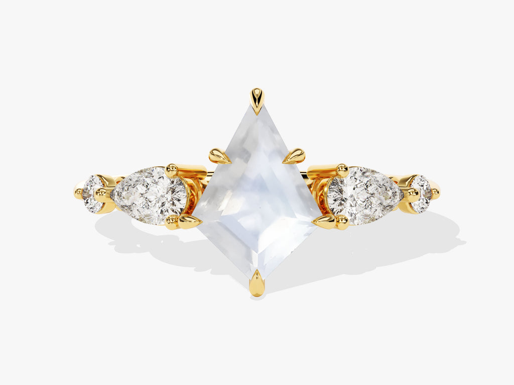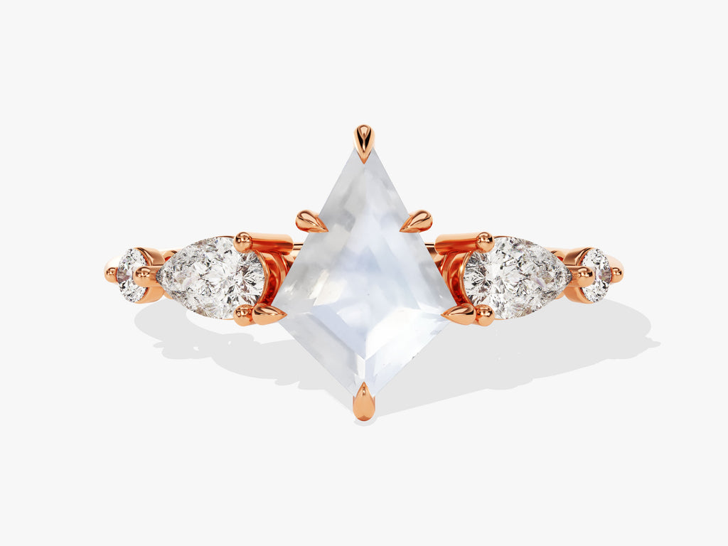 Kite Moonstone Engagement Ring with Pear Moissanite Sidestones