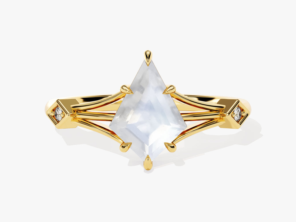 Kite Moonstone Split Shank Engagement Ring with Moissanite Accents