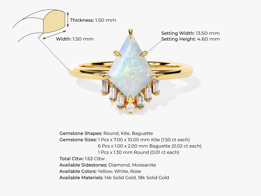 Kite Opal Engagement Ring with Baguette Moissanite Sidestones