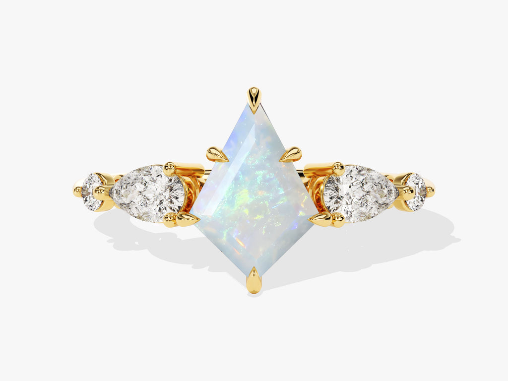 Kite Opal Engagement Ring with Pear Moissanite Sidestones