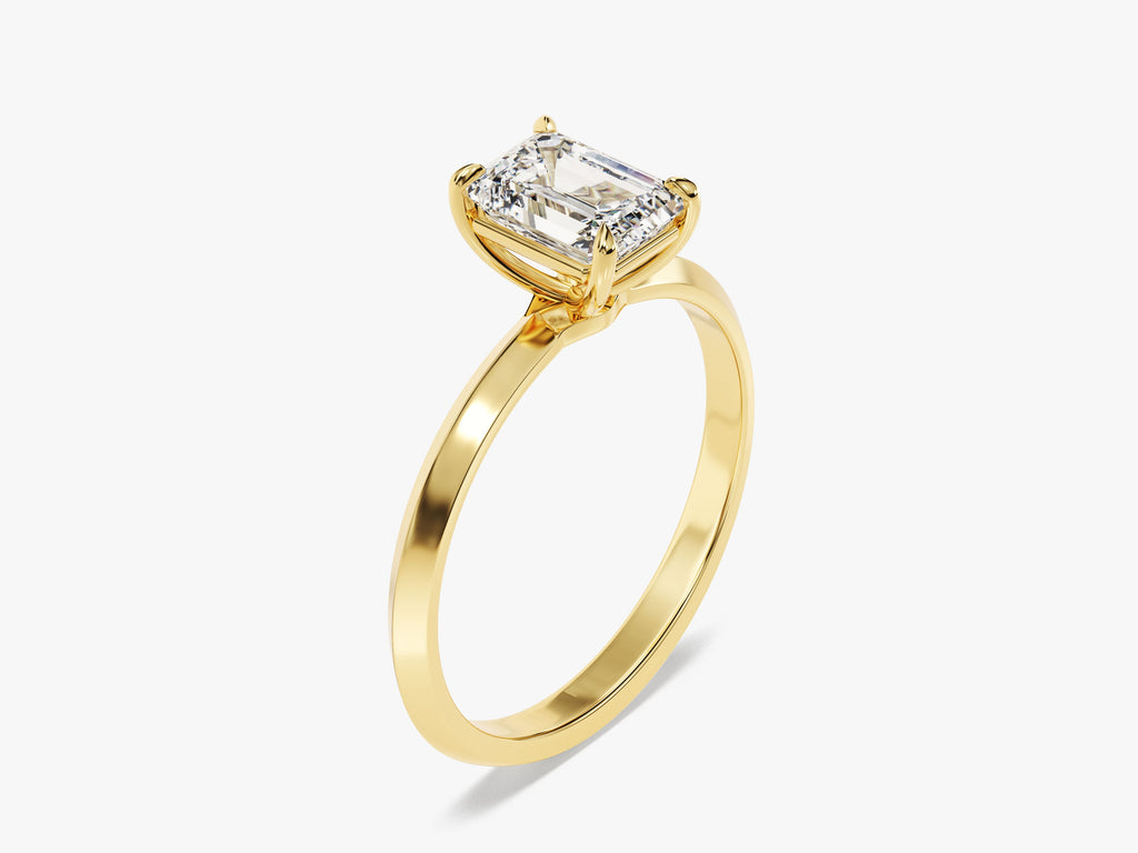 Explore the elegance of our Knife Edge Emerald Diamond Engagement Ring, a stunning fusion of timeless charm with a modern edge. This exceptional ring features a dazzling emerald-cut diamond, expertly crafted to enhance its exceptional clarity and captivating allure. The knife-edge band design introduces a contemporary twist, symbolizing the precision and unique facets of your love.