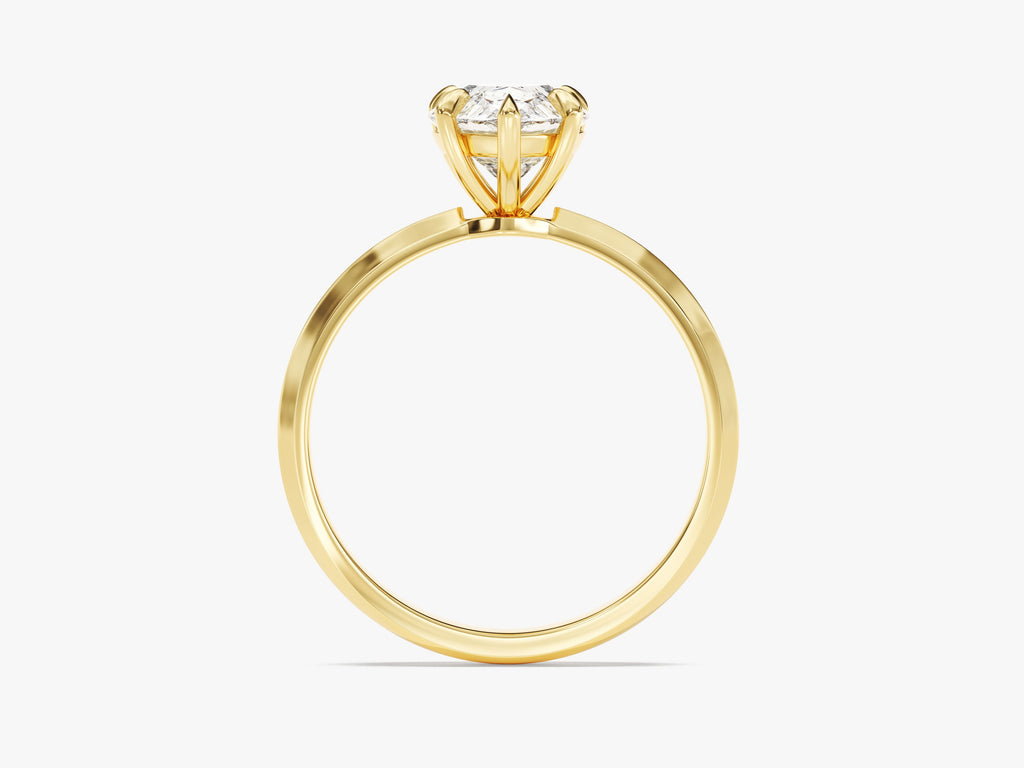 Discover the enchantment of our Knife Edge Pear Diamond Engagement Ring, a masterpiece that combines classic allure with a contemporary twist. This extraordinary ring showcases a brilliant pear-cut diamond, meticulously crafted to emphasize its remarkable clarity and mesmerizing charm. The knife-edge band design adds a modern and refined touch, symbolizing the precision and distinct facets of your love.