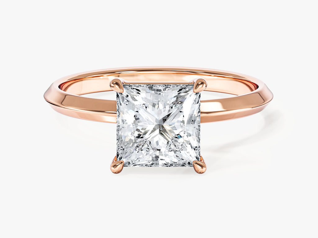Delight in the captivating beauty of our Knife Edge Princess Lab Grown Diamond Engagement Ring. At its core, a dazzling princess-cut lab-grown diamond takes center stage, designed to captivate with its remarkable clarity and distinctive allure. The knife-edge band design adds a modern touch to the ring, representing the sharpness and unique features of your love.